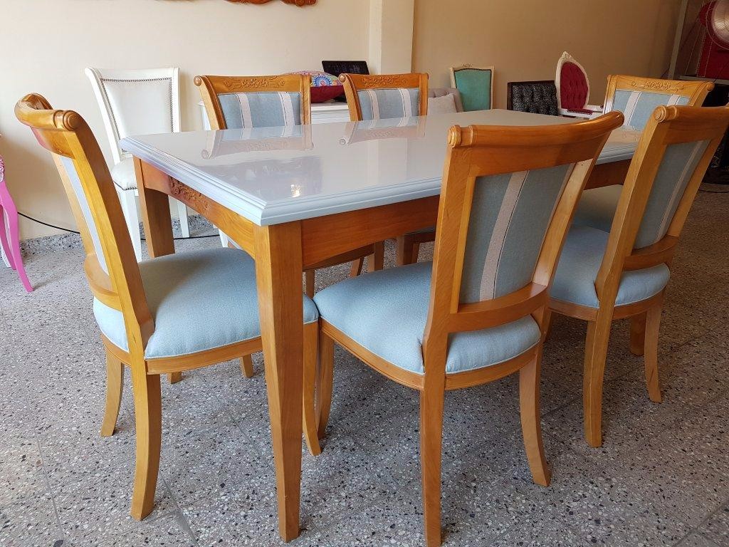 Juego de Comedor Century..!! Una mesa de 1.60 x 0.90 x 0.80 cm de altura + 6 sillas Century tapizadas en lino bien mullidas..!! Realizadas en maderas guindo y terminaciones en poliuretanos..!! Entrega inmediata ahora también 12 cuotas fijas o 18 cuotas..!!