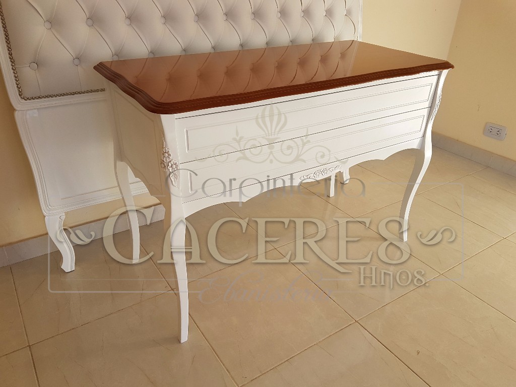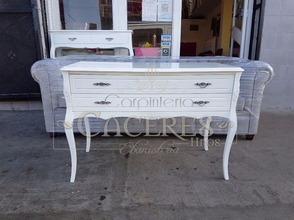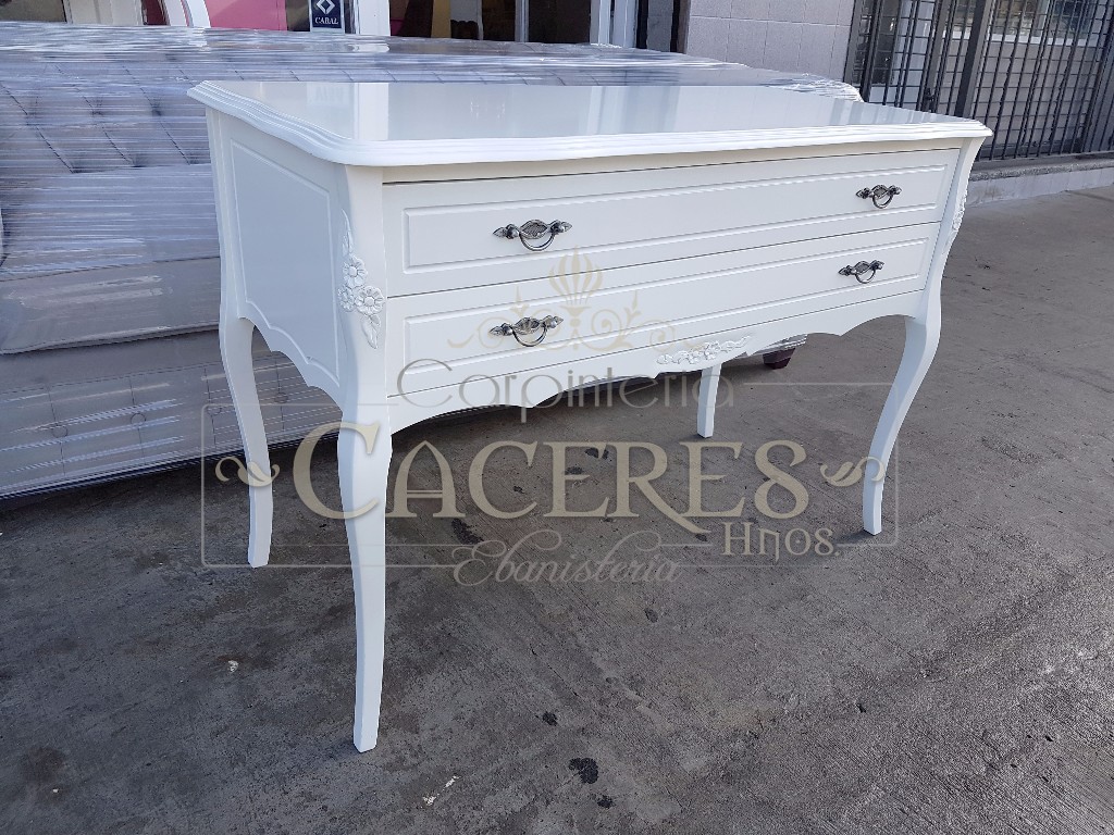 Cómoda Luis XV medidas 1.10 x 0.50 x 0.75 de altura, realizadas en maderas guindo, 2 cajones con guias telescopicas y laqueado poliuretano , tallado a mano artesanaltente.