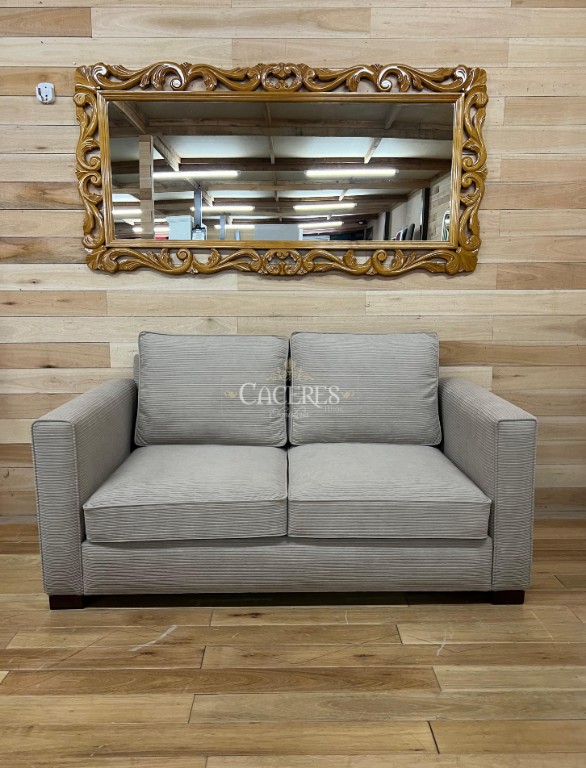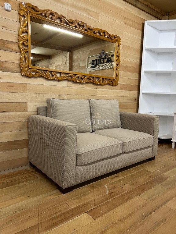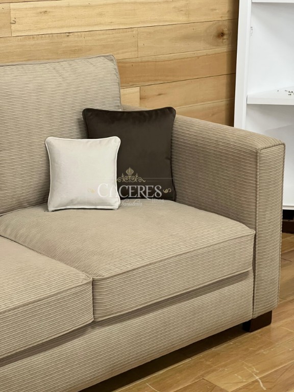 Realizado en madera maciza tallado artesanalmente, terminaciones a gusto (Tachas o cordón de vivo), tapizado en pana cordone color beige, patas a gusto.