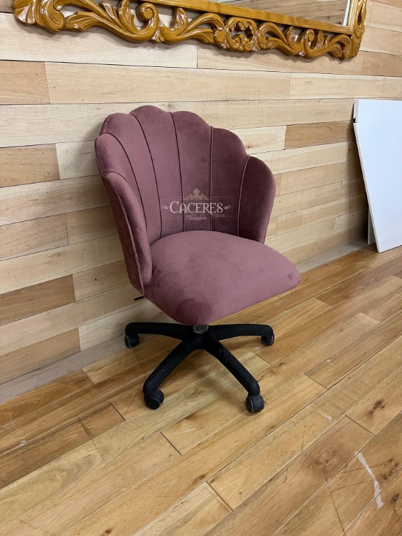 Realizado en madera maciza, tapizado en pana rosa claro.