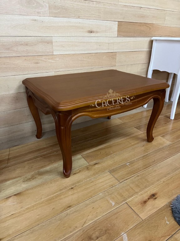 Realizado en madera maciza, tallado artesanalmente, laqueado en poliuretano color caoba claro semi mate.