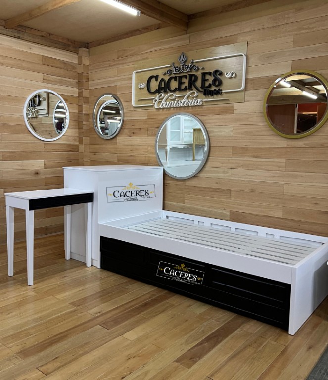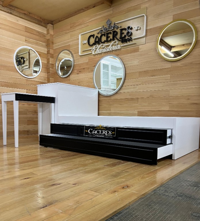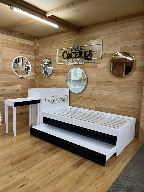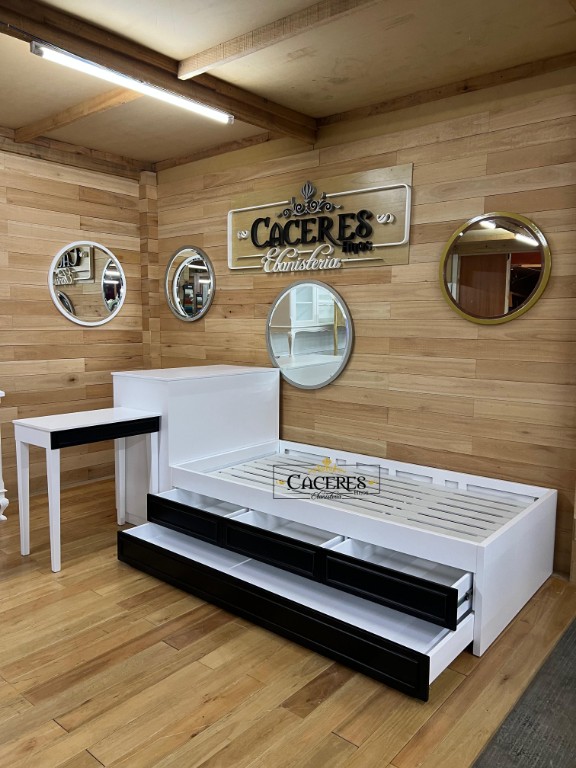 Realizado en madera maciza, laqueado en poliuretano color blanco y negro semi mate, tiradores a eleccion.