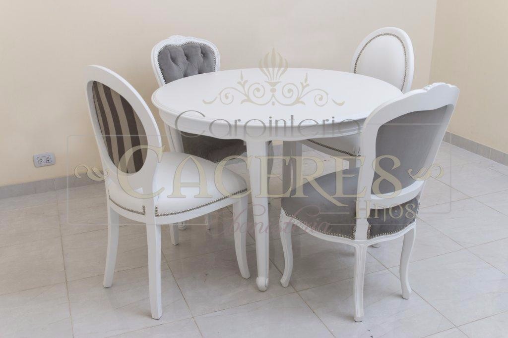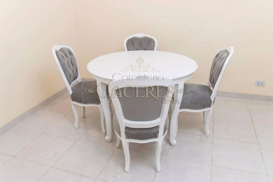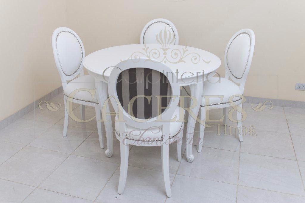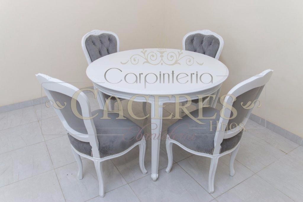 Mesa de comedor trabajado en madera de Guindo, por encastre y espiga. Tallado a mano. Disponible en diferentes medidas, terminaciones y combinaciones.